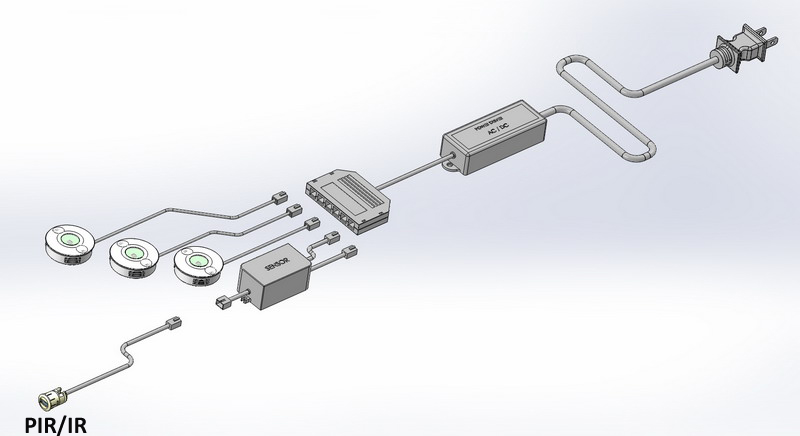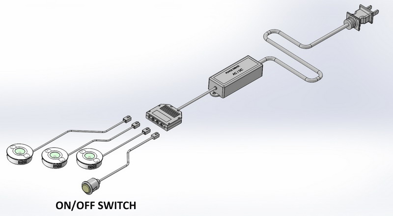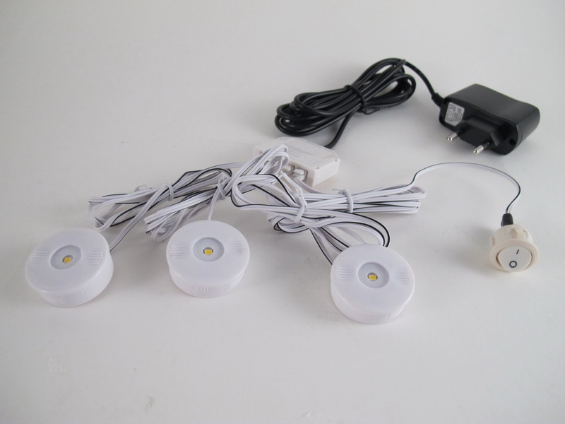 3 LED puck + switch + 4 way distribution block + led driver + AC power cord